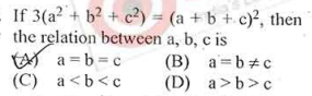 Now check all the four options to see which of them will give the value 2s2 on putting a=2s, b=s and c=-s