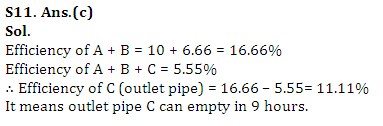 Q11. Pipe A and Pipe B can fill a cistern in 10 hours and 15 hours respectively. When a third pipe C which works as an outlet pipe is also open then the cistern can be filled in 18 hours. The outlet pipe can empty a full cistern in: