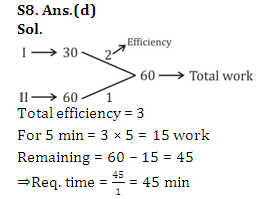 Q8. A water tank can be filled by a tap in 30 minutes and another tap can fill it in 60 minutes. If both the taps are kept open for 5 minutes and then the first tap is closed, how long will it take for the tap to fill the remaining part of the tank?