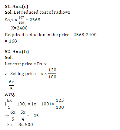 Q2. A watch is sold at a profit of 20%. If both the cost price and the selling price of the watch are decreased by Rs 100, the profit would be 25%. Original cost price for the watch is