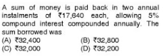 Q. 5) A sum of Rs. 6450 is borrowed at 5% simple interest and is paid back in 4 equal annual installments. What is amount of each installment?