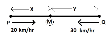 Let P and Q meet at point M. P has to travel X km to reach M and Q has to travel Y km.