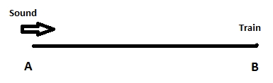Now let us consider the scenario when the train is moving from B to A. When the first shot is fired, the sound will travel from A to B and the person sitting inside the train will hear it instantly. Now when the second shot is fired after 13 minutes, the sound would not have to travel from A to B, because the person sitting inside the train is not at B any more. He has moved from position B to X. Hence the sound only needs to travel from A to X.