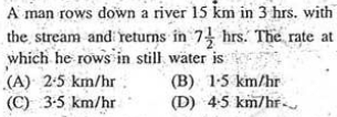 A man rows down a river 15 km in 3 hrs.