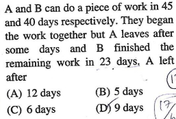 B and C together do 8/23 of the work, hence A does (1 – 8/23) or 15/23 of the work.