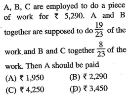 B and C together do 8/23 of the work, hence A does (1 – 8/23) or 15/23 of the work.