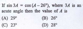 sin3A = +cos(90 – 3A) [sin is positive in 1st quadrant, hence we have written +cos(90 – 3A)]